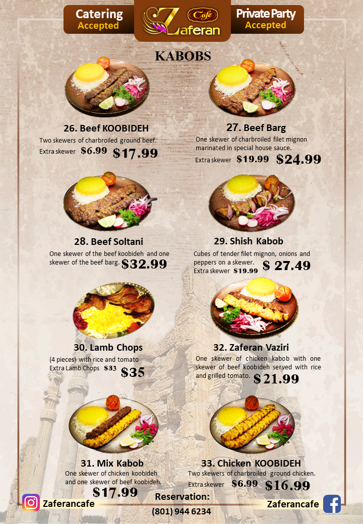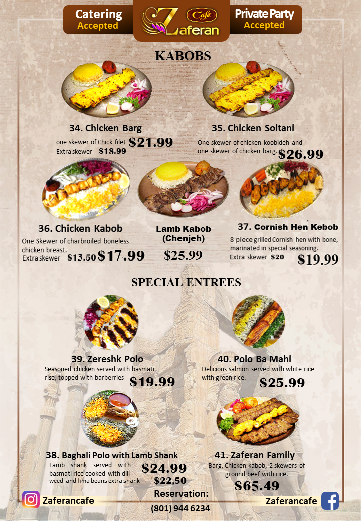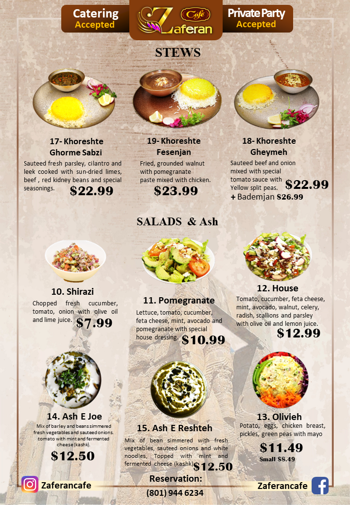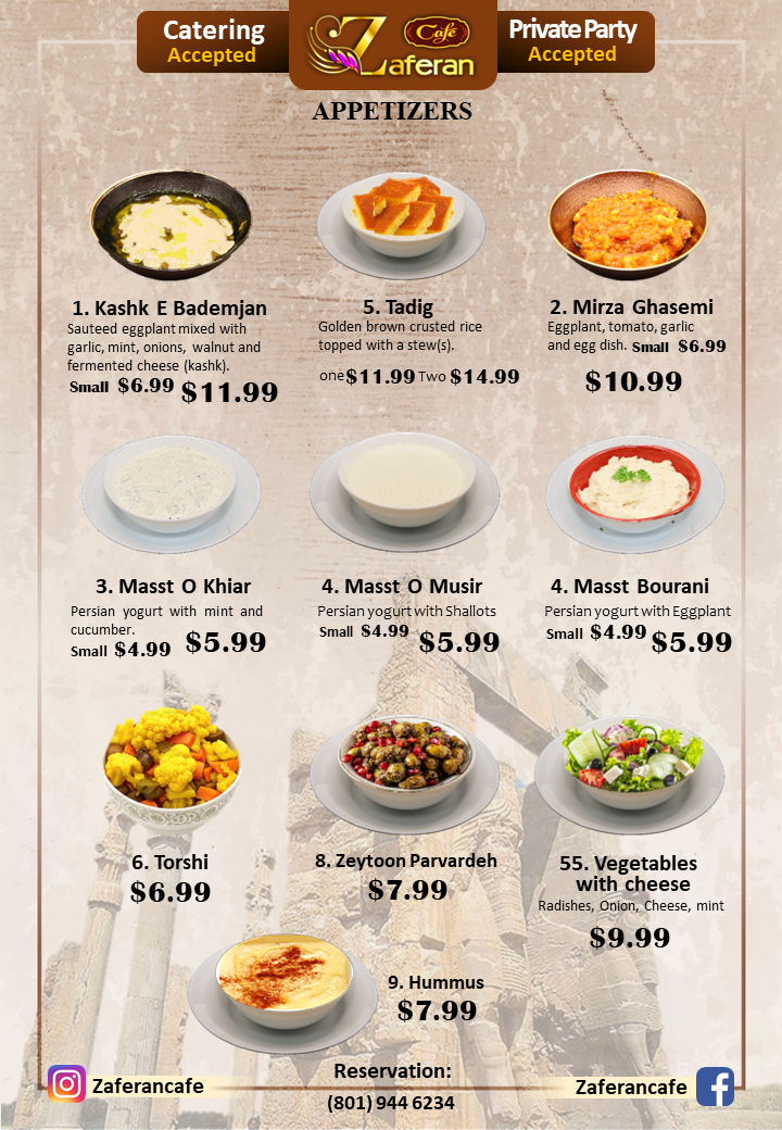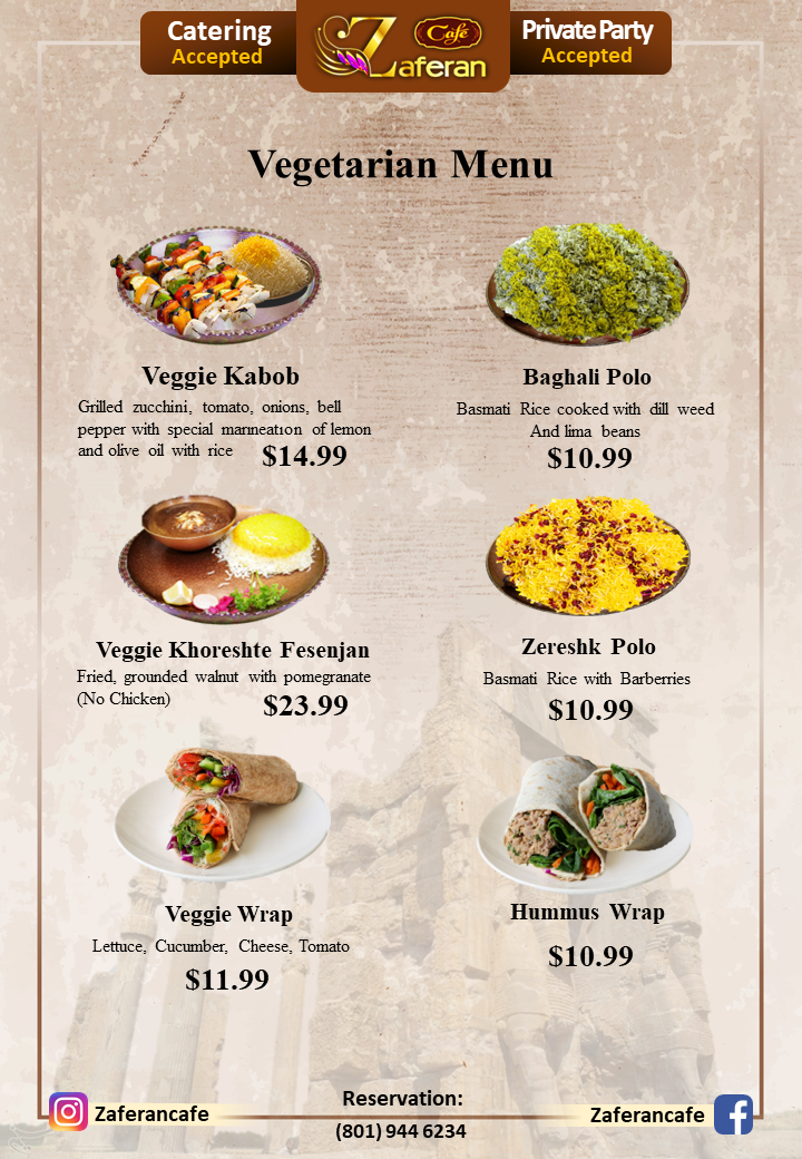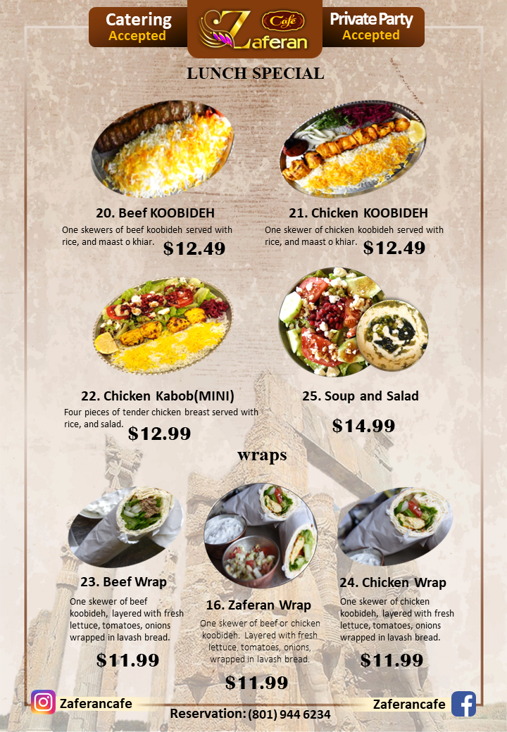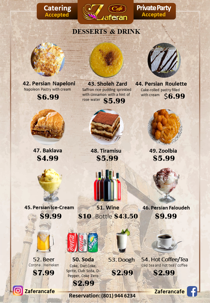 Zaferan Cafe Menu